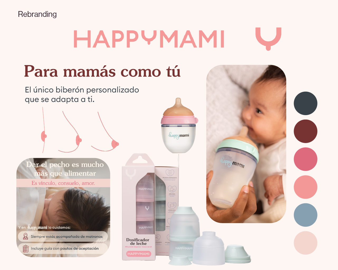 Led the complete rebranding process of Happymami, redefining the brand’s visual identity to reflect its values better and connect with a modern audience, from logo, typography and colour palette to brand tone and web design.